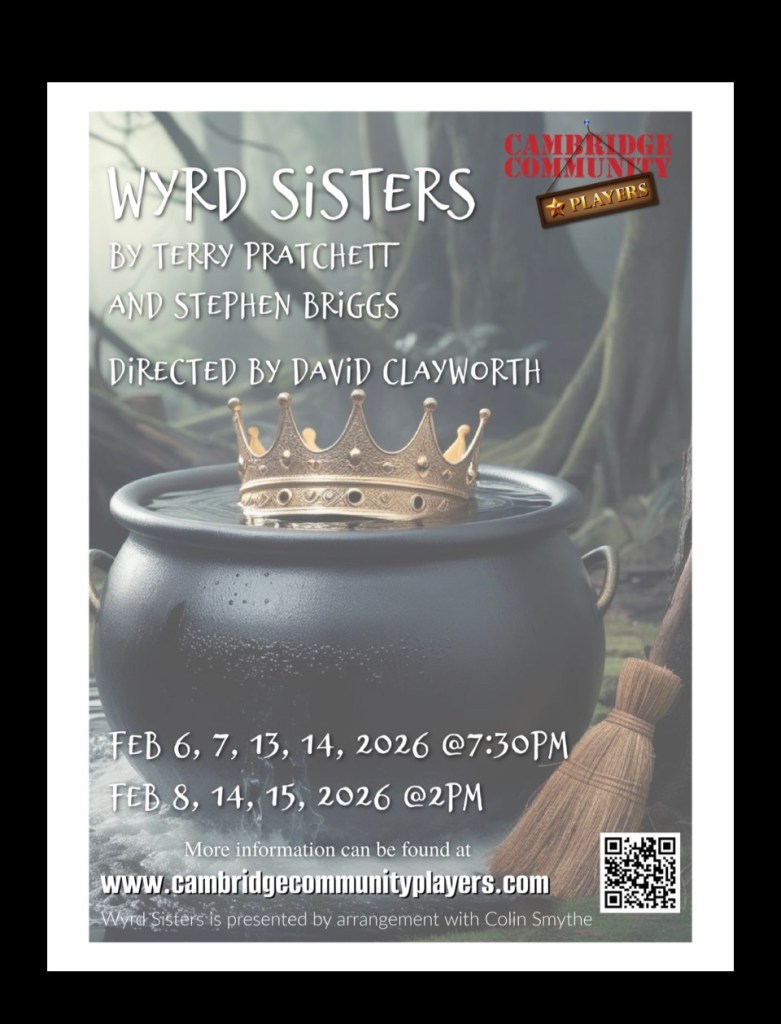 In the mean time, my illustrations are in an art show on Feb. 6,7,8, 13,14,15 in tandum with a showing of Wyrd Sisters, produced by Cambridge Community Players. Details below: